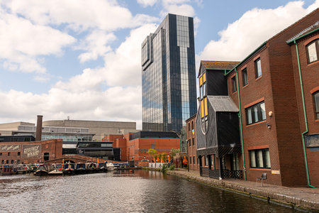 Birmingham,England - 7.22.2017: Brindleyplace is a large mixed-use canalside development, in the Westside district of Birmingham, England.