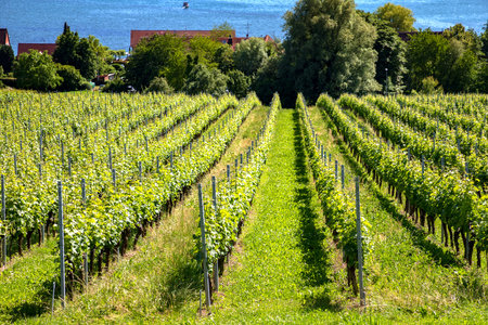 View of vine plants in Uhldingen on Lake Constance in Germany