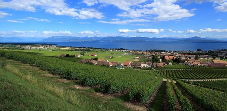 Panoramic view of Lavaux vineyard upon Geneva lake, Switzerland