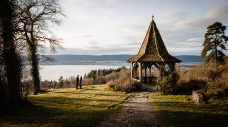 A view of a gazebo on the shores of Lake Constance
