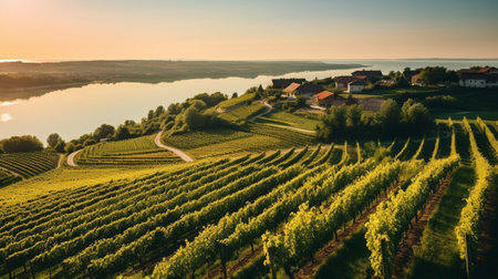 Generative AI : Slovenian and Austrian wine road among vineyards in Slovenia at sunset Scenic landscape and nature near Maribor in Slovenija