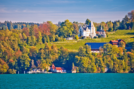 Meggenhorn Castle and idyllic lake Luzern landscape view, central Switzerland