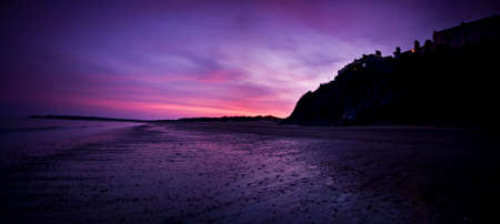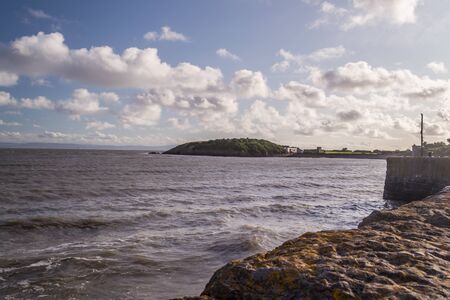 Summer evening at Colwyn bay, North Wales. Warm summer sunset and a rocky beach