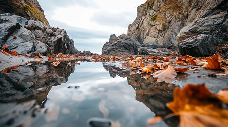 AI Generated. Dramatic Sunset over Rocky Coastal Landscape
