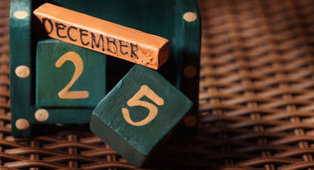 New Years content, Christmas tree gold toys, a small Christmas tree, lights, wood eco cubes with the figure on December 25.