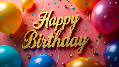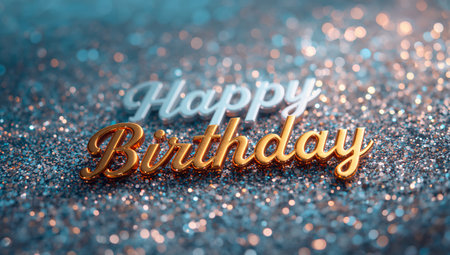 Colorful letters spell out Happy Birthday against a shimmering backdrop, creating a joyful and festive atmosphere perfect for a birthday celebration.