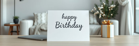 Celebrating a special occasion with a birthday card on a stylish table in a cozy living room setting