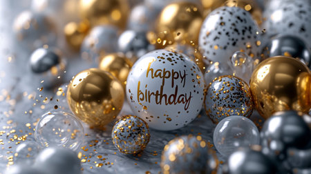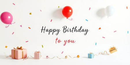 Colorful birthday decorations with balloons and gifts create a festive atmosphere for celebrating a special occasion