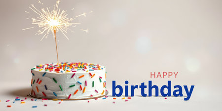 Celebrate a special birthday with a cake adorned by colorful sprinkles and a sparkling candle
