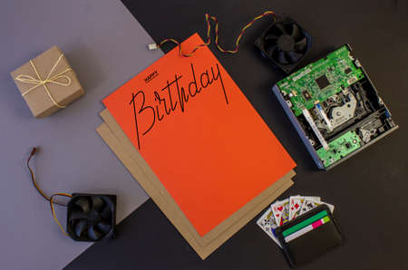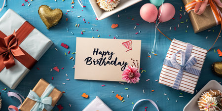 postcard , Internet banner , flat lay with a birthday greeting, with the inscription - happy birthday