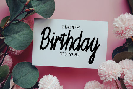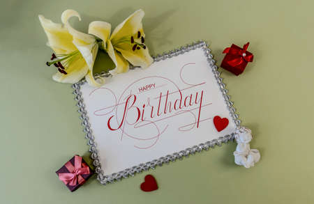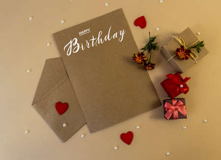 postcard, Internet banner, flat lay with a birthday greeting, with the inscription - happy birthday