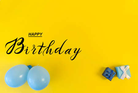 postcard, Internet banner, flat lay with a birthday greeting, with the inscription - happy birthday. For men or boy.