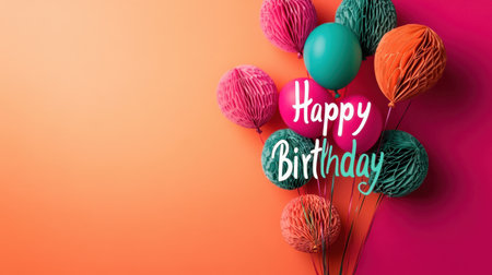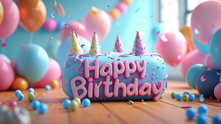 happy birthday text banner poster greeting card copy space background cake balloons party celebration, congratulating, present colors funny enjoy blessings holiday gift