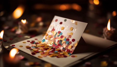 Joyful celebration with glowing candlelight, traditional Christmas decor and confetti generated by artificial intelligence