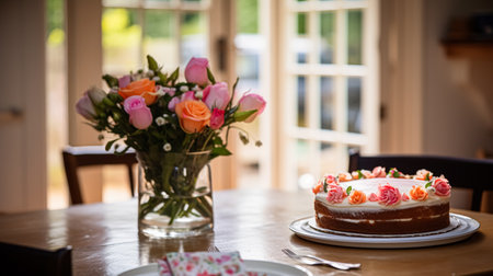 Homemade birthday cake in the English countryside house, cottage kitchen food and holiday baking recipe inspiration