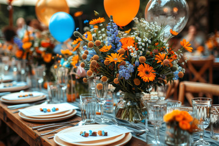 Experience a lively party scene featuring vibrant balloons and stunning floral centerpieces, perfect for creating an uplifting ambiance for any celebration or event.