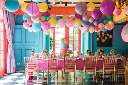Whimsical decor, vibrant balloons, and joyful revelry create a lively and enchanting party ambiance.