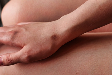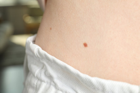 Closeup view of woman's body with birthmark