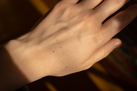 Woman with moles on her body, closeup