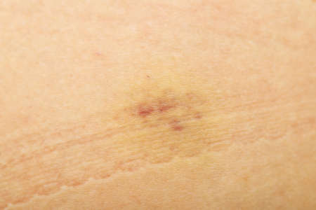 Bruise on woman leg skin,Healthy skin body care concept