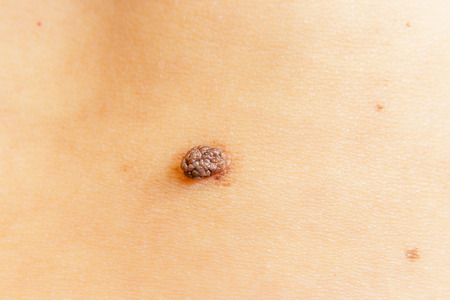Skin disease. Closeup brown mole on caucasian human body.