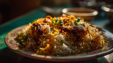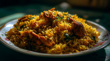 Delicious Chicken Biryani: Aromatic Indian Rice Dish Served on a Plate