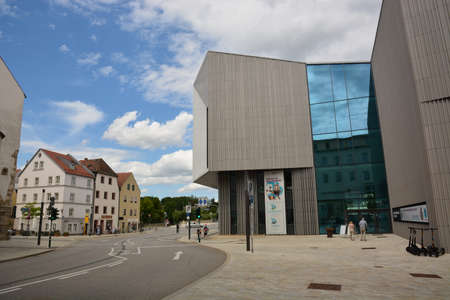 RIESA/GERMANY - July 23/2018: Photo of cityscape with house and blue sky
