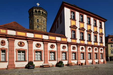BAD RODACH, GERMANY - CIRCA AUGUST, 2019: The Marktplatz and city hall of Bad Rodach, Bavaria, Germany