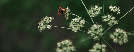 selective focus of bee on cow parsley flowers with blurred background