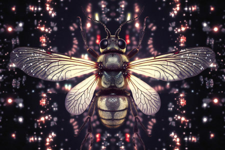 illustration of a bee on the background of a lot of lights