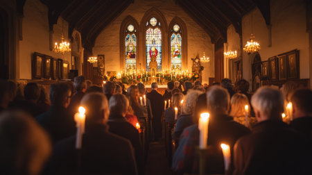 A candlelit Christmas Eve service, Ai generated image