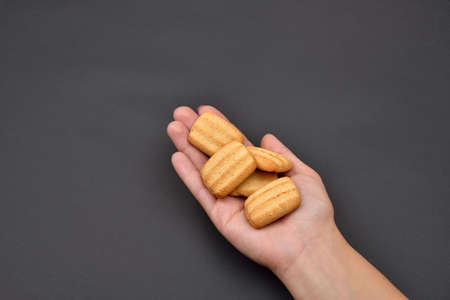 Biscuit cookies on a light background. Children love sweets.