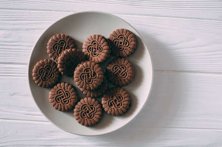 Cookies on wooden and dark background, delicious sweet dessert cookie food snack, cookies chocolate