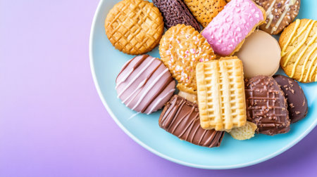 Sweet and crunchy variety of cookies and wafers in pastel and chocolate tones, beautifully plated