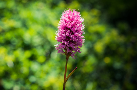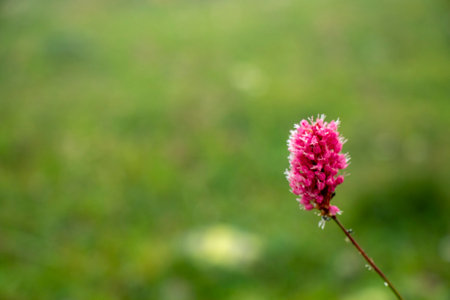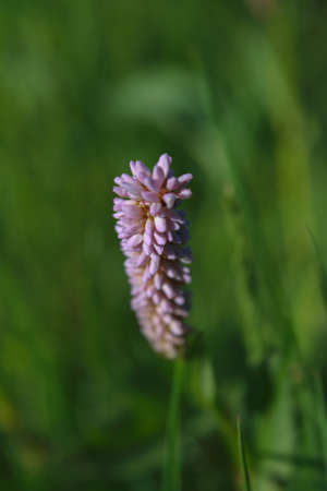 A bistort flower growing on a summer meadow.
