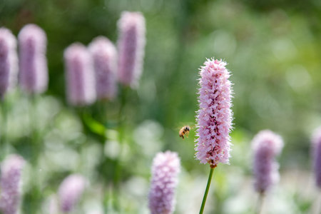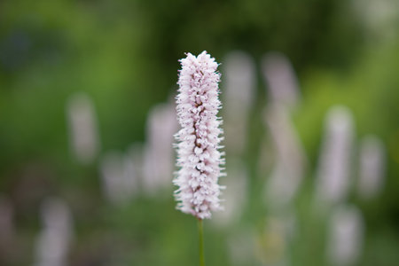 Flowers of Bistorta officinalis known as bistort, in the garden.