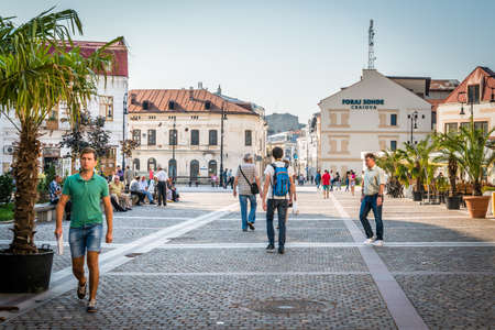 Craiova, Romania - September 16, 2016: People are walking on Alexandru Ioan Cuza street in Craiova, Romania