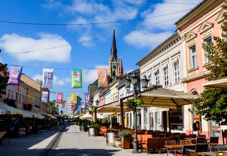 Novi Sad, Serbia - August 15, 2018: Novi Sad pedestrian walking area at the central city square on a sunny day