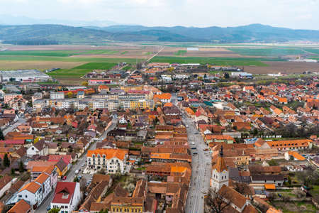 View from the stone walls at the Rupea Citadel (Cetatea Rupea) after renovation towards a small town in Brasov county, in the southern part of Transylvania (Transilvania) region, Romania in summer