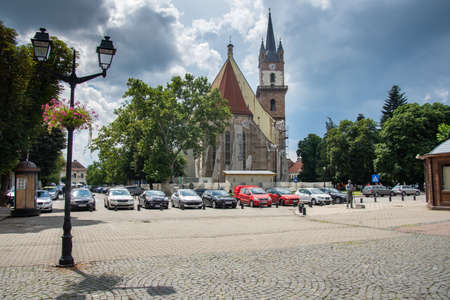 Bistrita, Romania, Evangelical Church in a sunny day ,2020