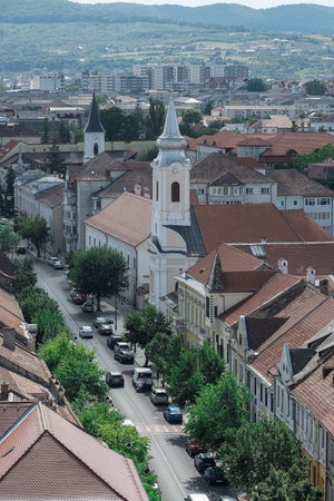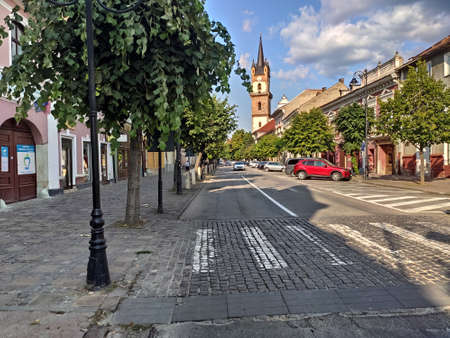 Romania ,Bistrita ,Gheorghe Sincai Street, 2021, august ,Roman Catholic Church and Evangelical Church