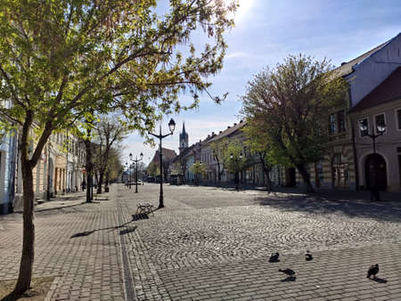 Romania ,Bistrita ,2020,april, Liviu Rebreanu street and Central square ,empty city in quarantine