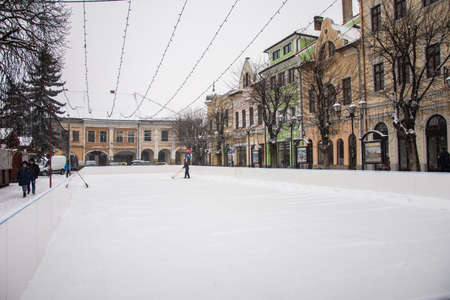 Artificial skating rink in Bistrita, Romania, 2021, December