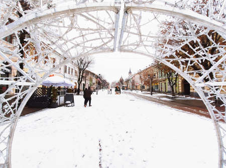 Poprad, Slovakia - December 31, 2019: The people at old town Poprad, Slovakia at winter