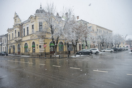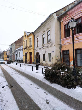 Old buildings in the central area of Târgu Mureș, Romania, February 2022