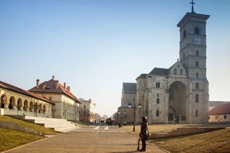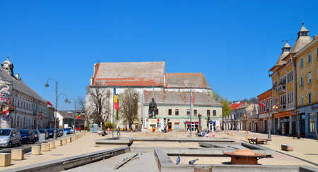 TURDA, ROMANIA - 04.04.2017: Republic Square and Avram Iancu statue landmark architecture