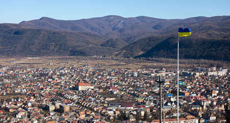 City in the mountains in Ukraine, the landscape of the city in the highlands.