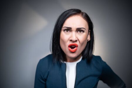 Portrait of angry pensive mad crazy stress asian woman screaming out (expression, facial), cry girl, beauty portrait of young panic burnout drama