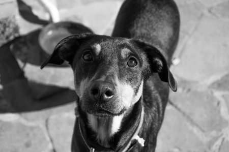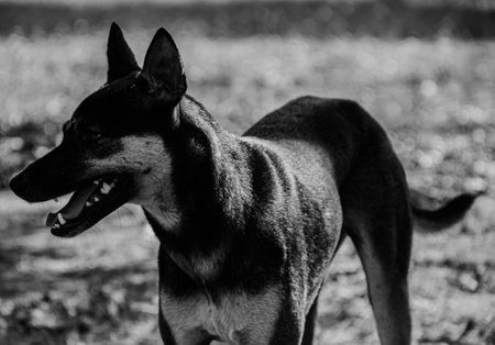 Portrait of a beautiful mixed breed dog in the park. Selective focus.