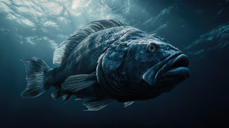 Underwater image of a large sea fish gracefully gliding through the water, highlighting its powerful yet elegant movement -
